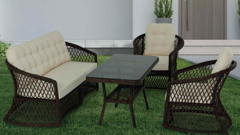 Bu üçlü bahçe mobilya takımı, tüm hava koşullarına karşı dayanıklıdır ve yüksek esneklik sağlayarak uzun ömürlüdür. Alüminyum iskeleti sayesinde hafif ve kolayca taşınabilir. Ayrıca, paslanmaz özelliği ile bakımı kolaydır ve uzun süreli kullanım için idealdir.